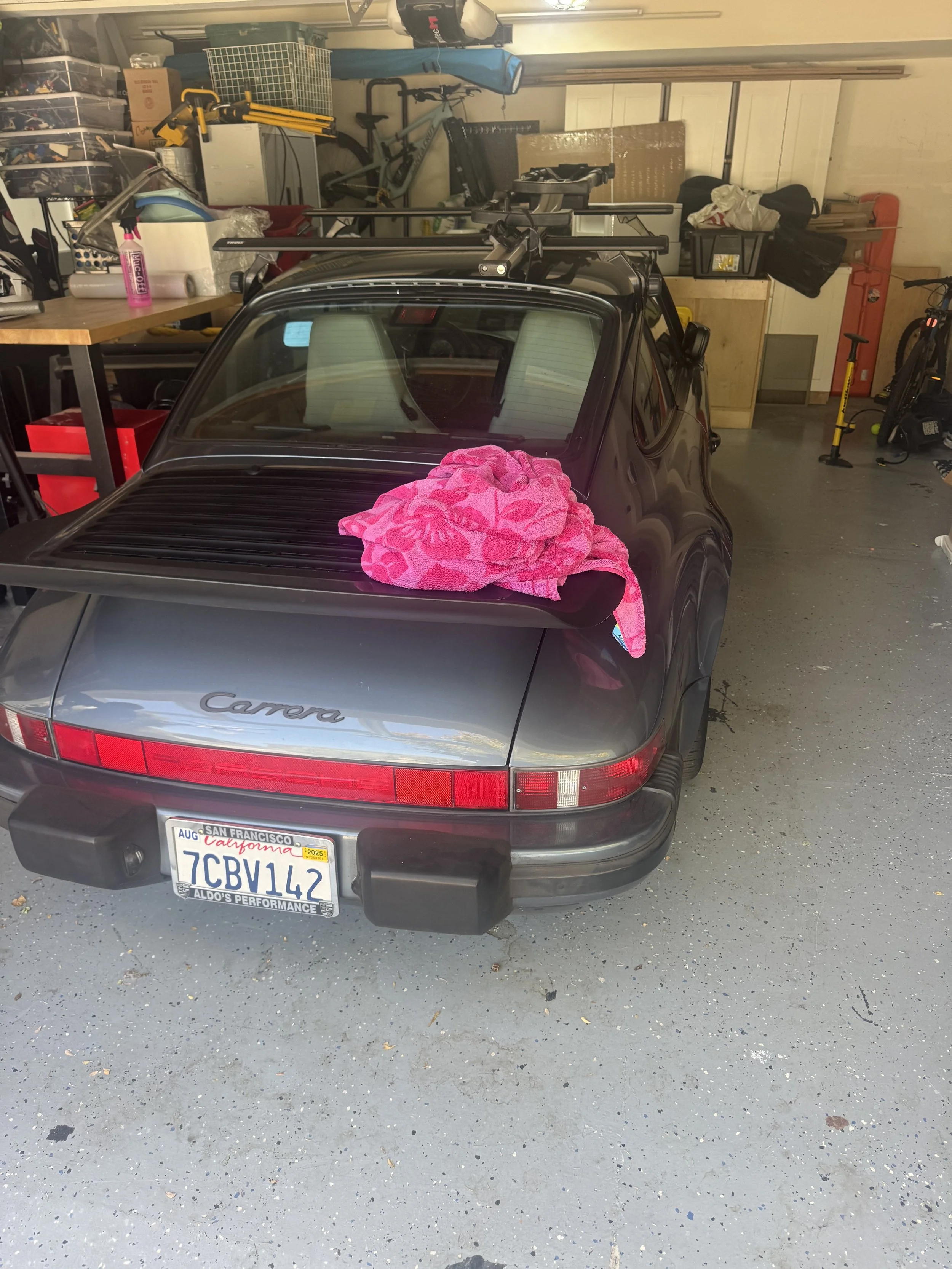Rally car racing nathan’s 1980s Porsche (it will also serve as a towel rack)